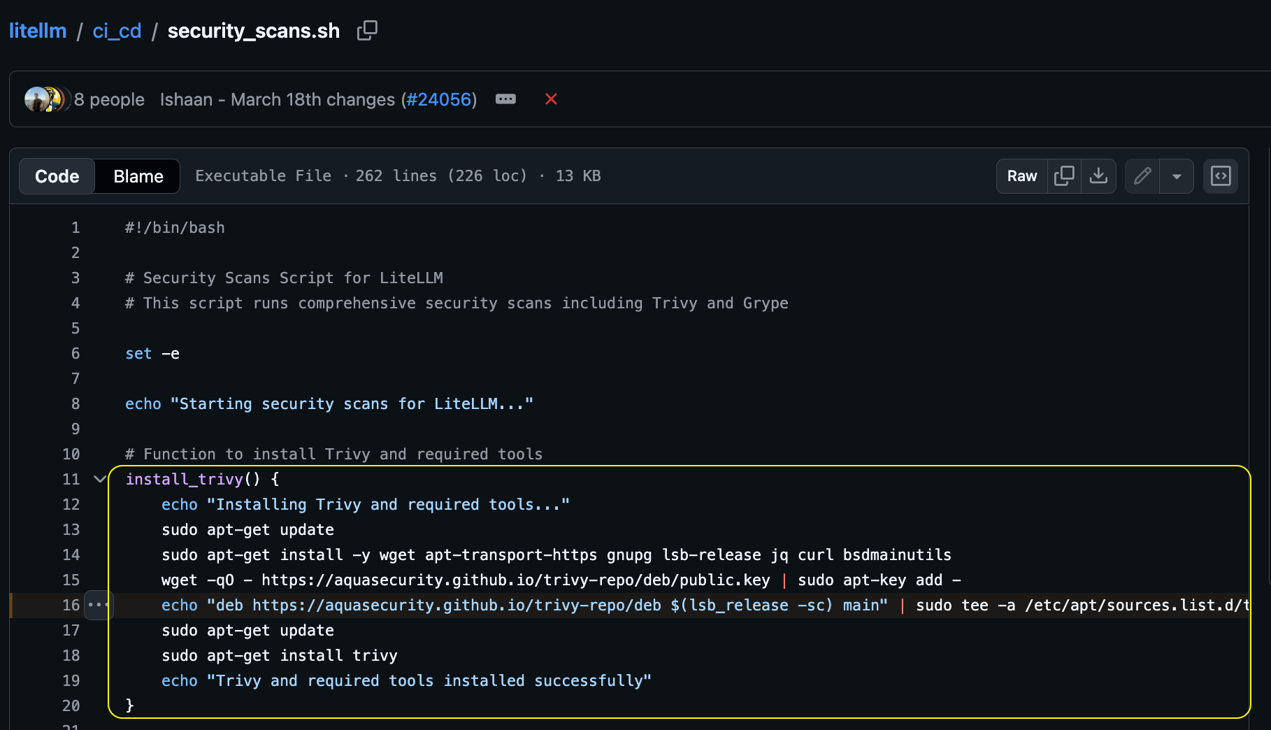 Critically, litellm’s own CI/CD pipeline runs Trivy as its security scanner.